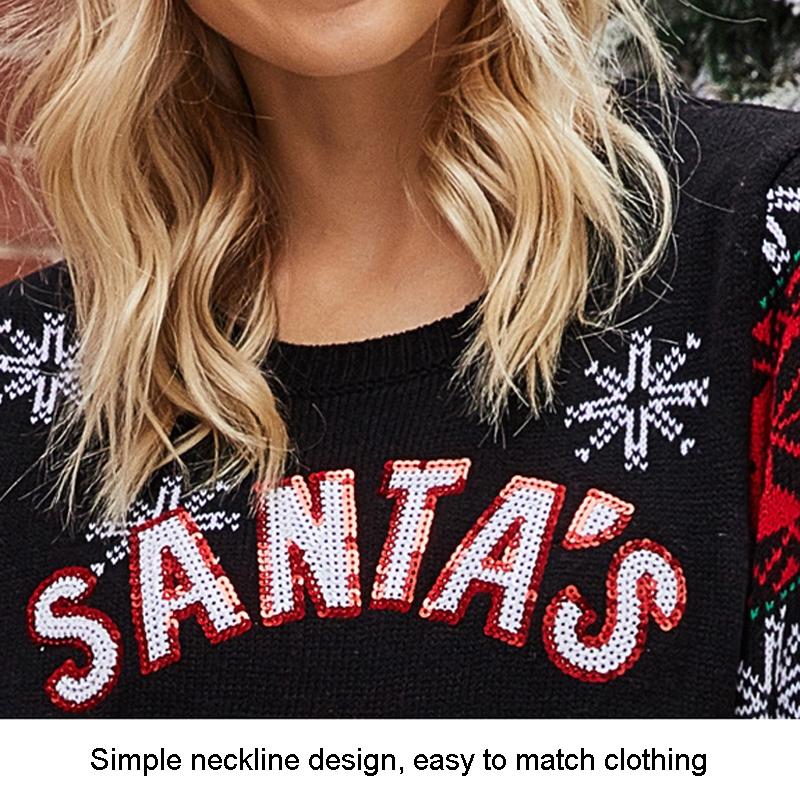 • 1 x Christmas Women Pullover Sweater Santa Claus Embroidery Crew Neck Knit Sweater