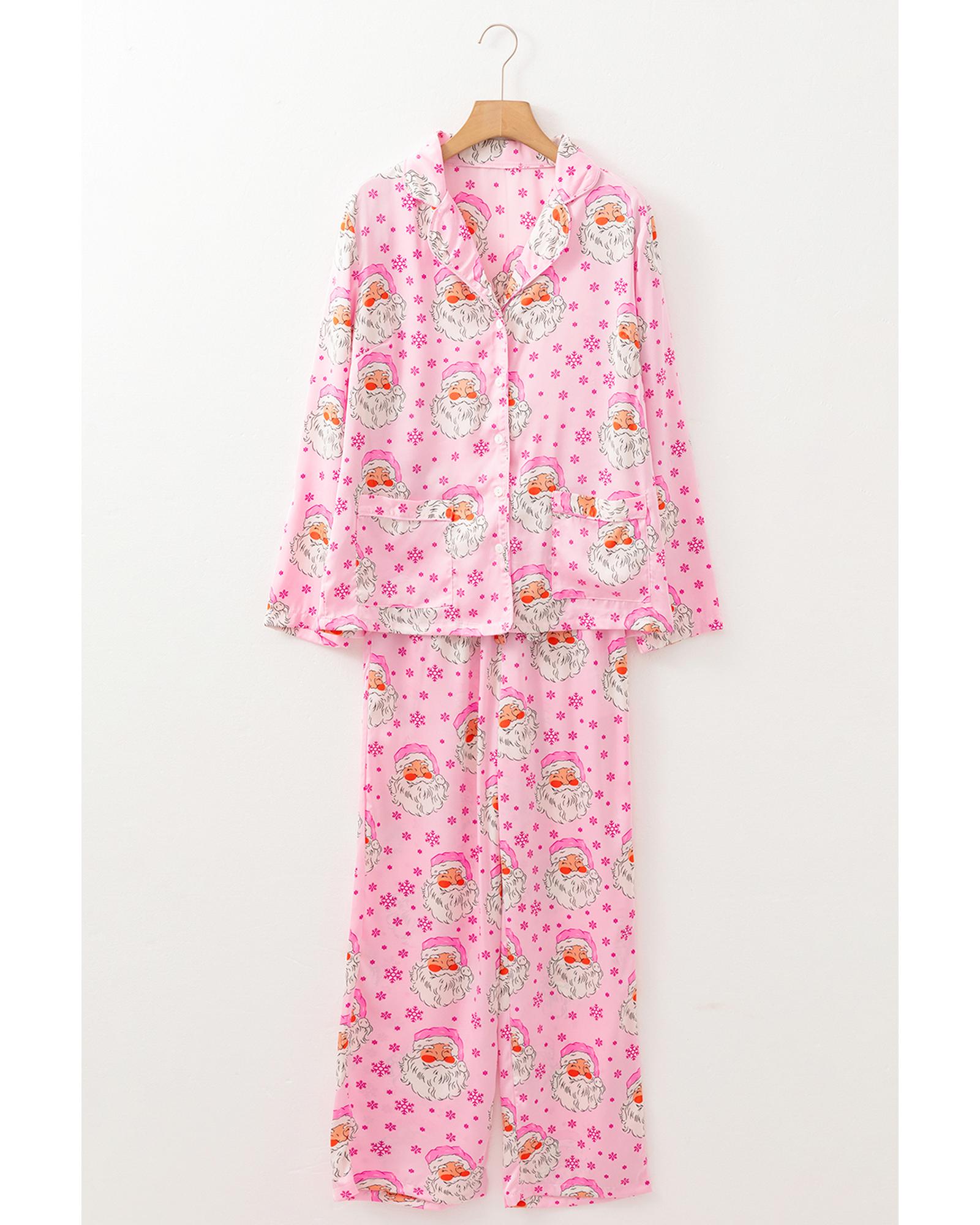 Pink Santa Claus Snowflake Long Sleeve Shirt Christmas Pajama Set - XL
